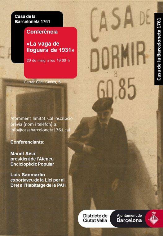 Parlarem tots i totes d’aquella història amb Manel Aisa autor del llibre «La Huelga de Alquileres y el Comité de Defensa Económica» y Luis Sanmartín portaveu de la Llei per el dret de l’Habitatge de la PAH