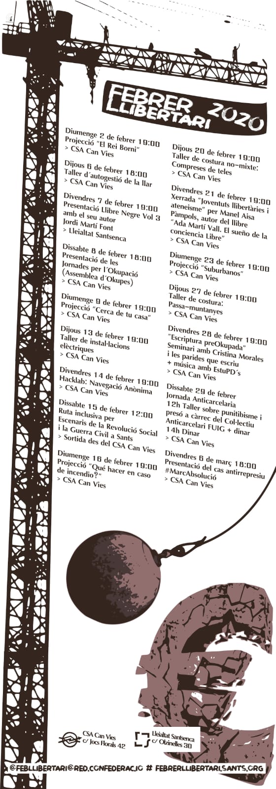 - Tiempo de generosos y cautivos anarquistas presentació a Llealtat Santssenca, dins de les jornades de Febrer Llibertari.
