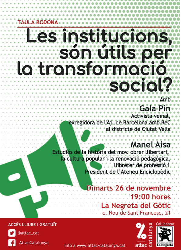 - Ahir a Terrassa, amb la CGT i el Centre d’Estudis Josep Padilla , presentant el llibre de “Tiempo de generosos y cautivos anarquistas, para echar andar en el recuerdo, 1939-1976”, de l’Editorial, El Lokal de Barcelona.