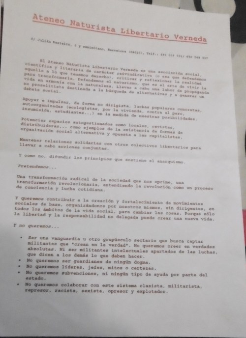 • RUTA SOBRE ELS Locals de l’ATENEUS LLIBERTARIS A GRACIA , AMB L’Ateneu Llibertàri del carrer Alzina
