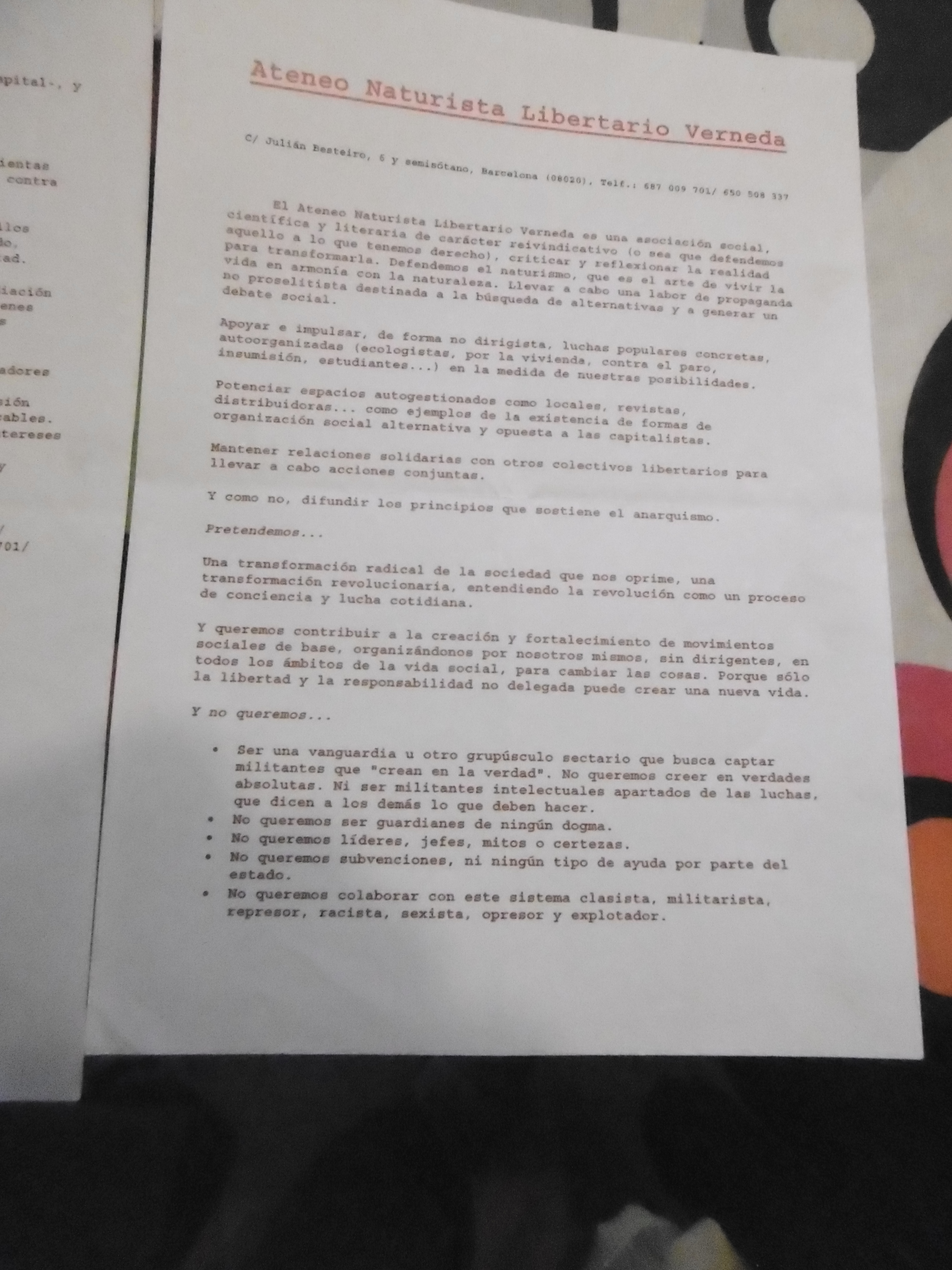 • RUTA SOBRE ELS Locals de l’ATENEUS LLIBERTARIS A GRACIA , AMB L’Ateneu Llibertàri del carrer Alzina