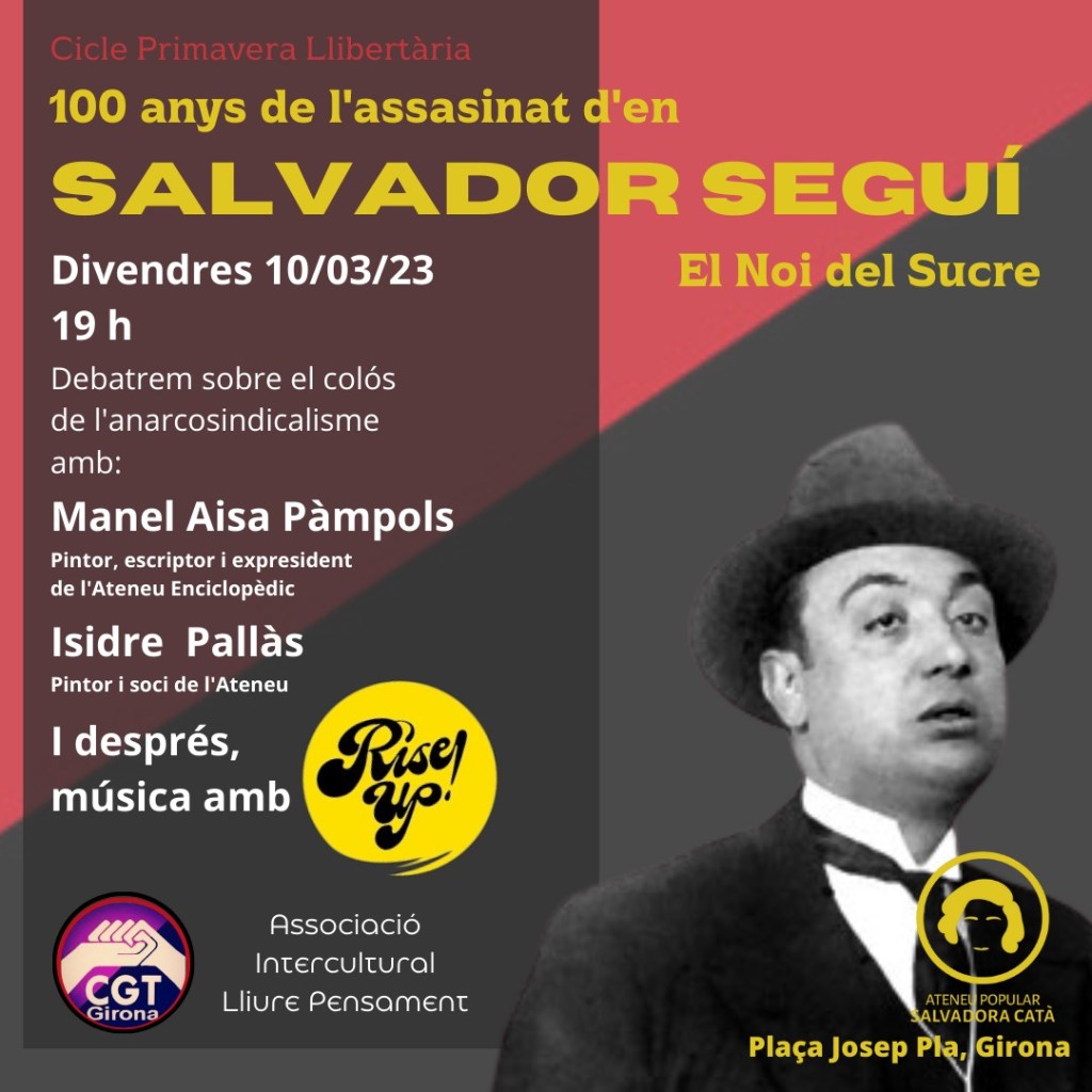 Parlar de Salvador Seguí Rubinat, és parlar amb majúscules de l’anarcosindicalisme català, d’aquelles organitzacions obreres que van fer possible tant a Espanya com a l’altra banda de l’Atlàntic, els catalans emigrants, de què la lluita obrera, estava molt present i que es podia inclús guanyar amb arguments, i això és el que feia el Noi del Sucre, Salvador Seguí Rubinat, nascut a Lleida (a Tornabaus) el 23 de setembre de 1887, els seus pares el portaren a Barcelona com tanta gent a les hores per emigrar i guanyar-se la vida, perquè al fi i cap, a les capitals de província de l’interior estava molt difícil dignificar les vides i tenir un sou digne.