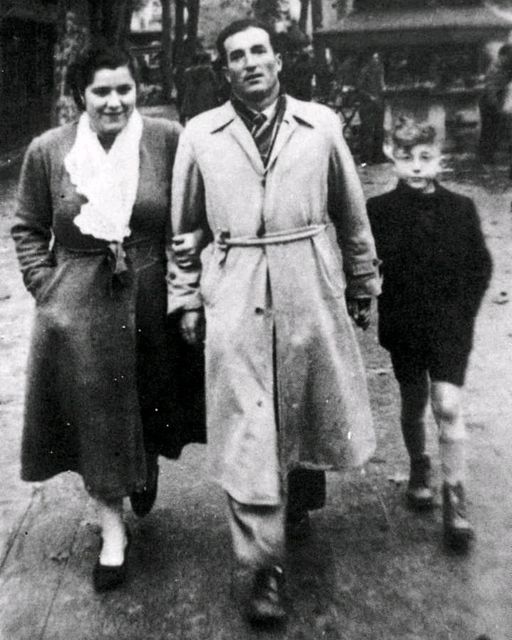 foto: César Saborit con su compañera Magdalena Roig e hijo e Francia 1951