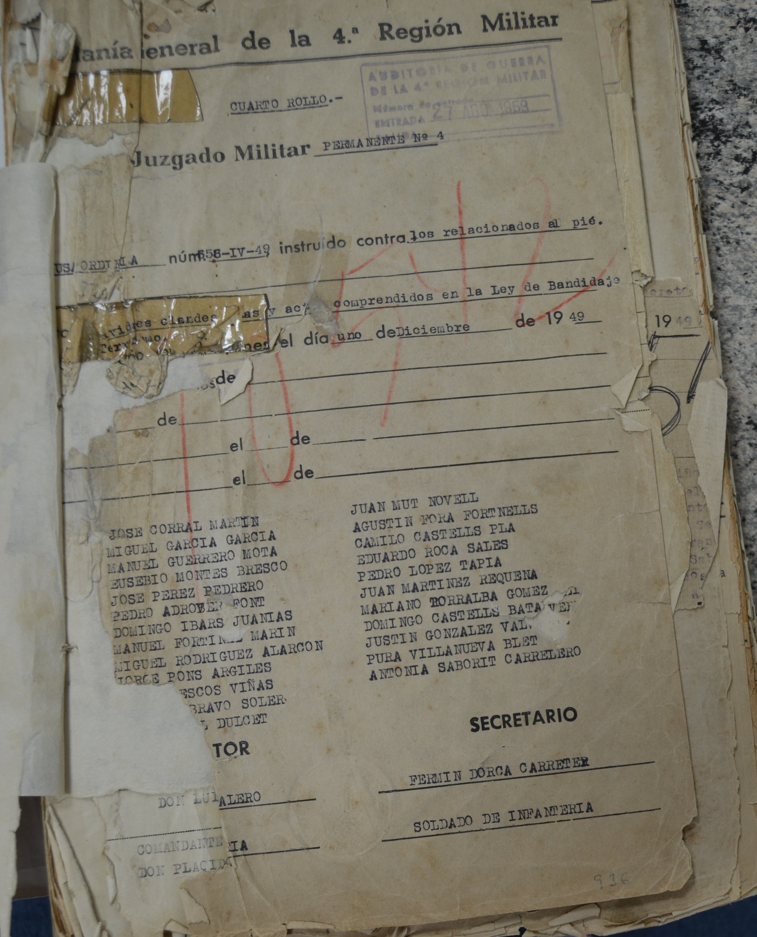 14 de març de 1952 van ser afusellats al camp de la Bota Ginés Urrea Piña, Santiago Amir Cruanyes, Josep Pérez Pedrero, “Tragapanes”, Jordi Pons Argilés, “Tarántula” i Pere Adrover Font, la resta va ser commutada per trenta anys de presó.