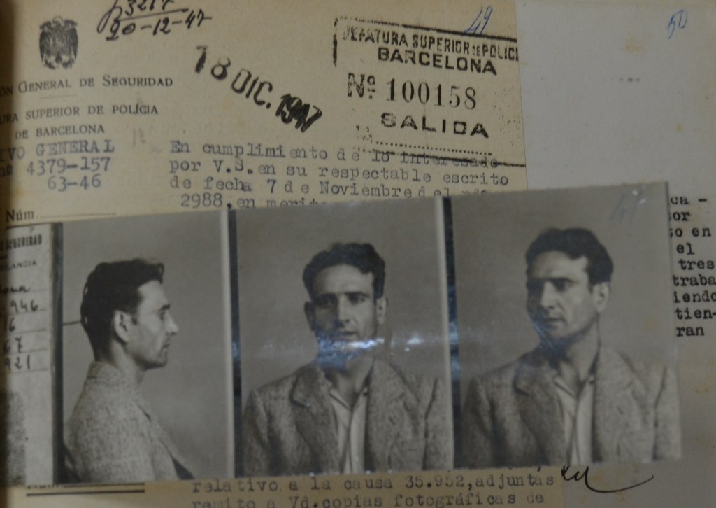Lo que sabemos es que, a inicios de febrero del 39 intenta pasar la frontera hacia Francia por el Pirineo Oriental, pero, como otros muchos, ya estaba agotado físicamente y decide volver a Barcelona, donde al parecer fue identificado y detenido, al poco de llegar, a partir de entonces empieza a ser presionado y muy coaccionado por el comisario de la Brigada Político Social que conocía tanto el anarquismo como los propios anarquistas, estamos hablando de Eduardo Quintela, quien le propone que se haga confidente de la policía, al igual que su gran amigo Antonio Sebas Amorós.