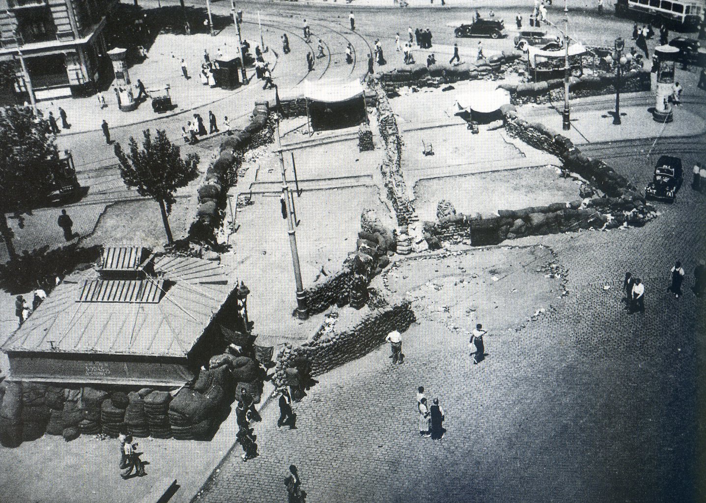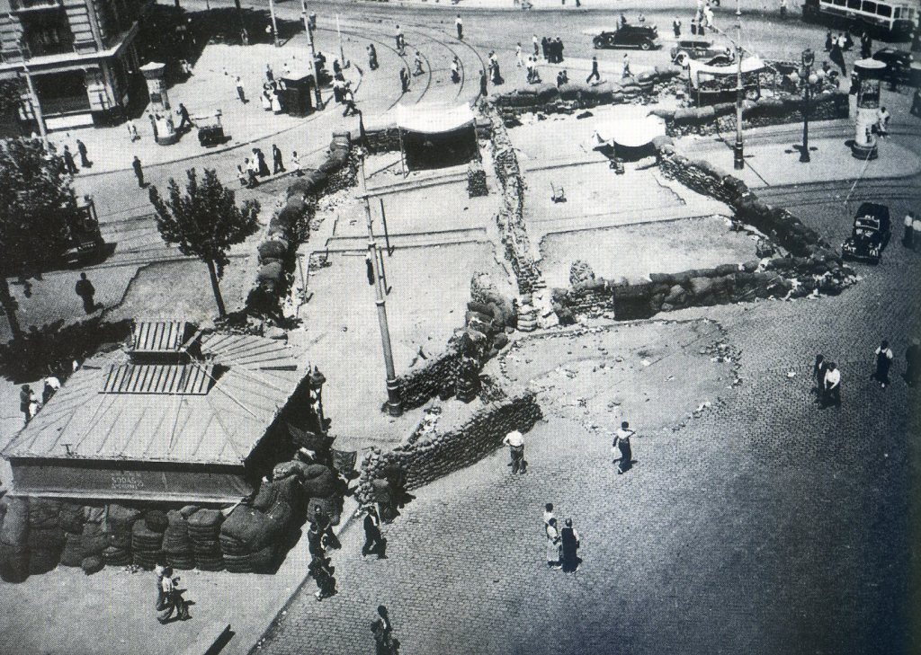 Aquell diumenge 19 de juliol de 1936, a la matinada les tropes havien sortit del Caserna de Lepant (Gran Via) i la Cavalleria de Montesa de la (Avd. Roma).