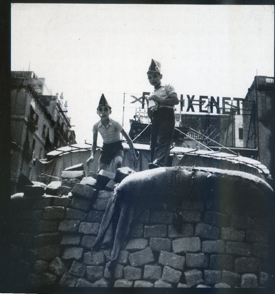 Aquella nit segurament els homes i la gent del Poble Sec van construir la barricada del Molino i a l’un demà Gerda Taro va fotografiar la barricada, però ja amb els nens jugant per sobre de les barricades i a la guerra.