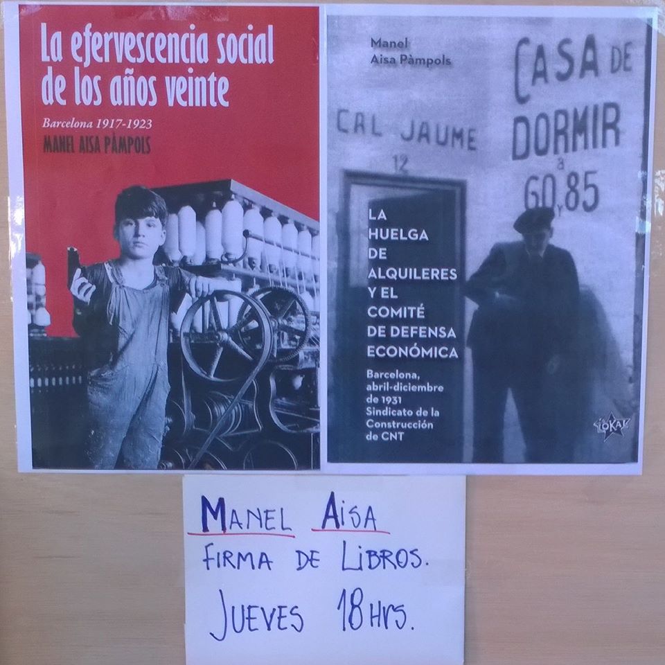 - Presentació a la Llibreria La Memòria, al barri de Gracia de Tiempo de Generosos y cautivos anarquistas y Justo Bueno, una vida cargada de ilusiones y tropiezos. de Manel Aisa Pàmpols