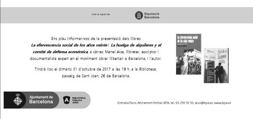 • Biblioteca Josep Miracle, Presentació de La Huelga de Alquileres de 1931 y el Comité de Defensa Económica