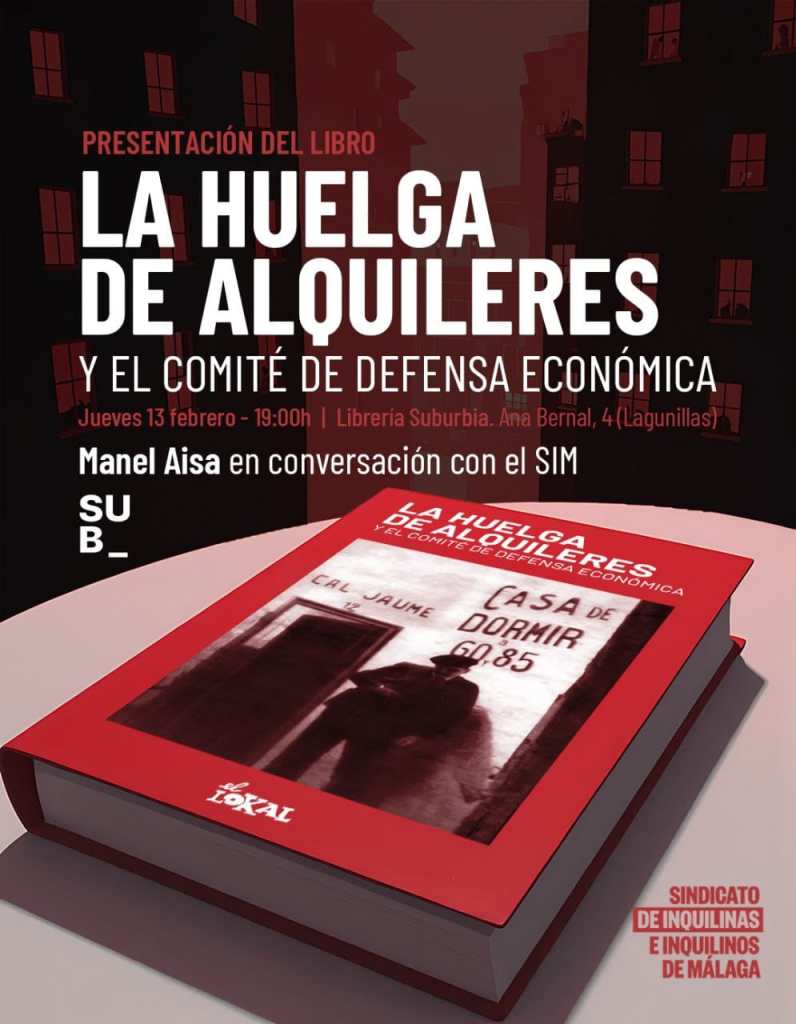 El jueves 13 de febrero, Manel Aisa , autor de «La huelga de alquileres y el comité de defensa económica», nos contará qué nos distancia y qué nos acerca a aquellas luchas.