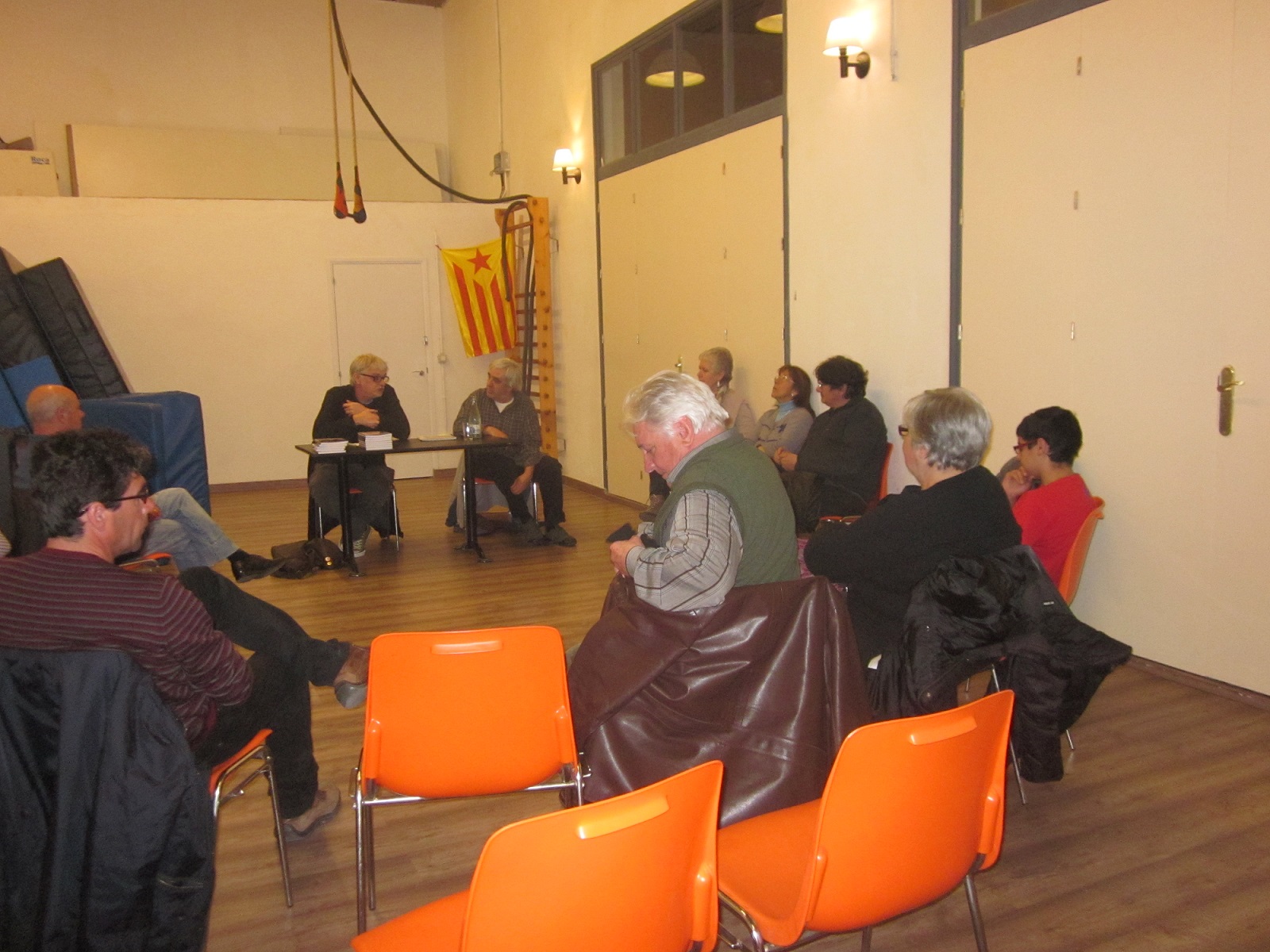 a l’ateneu del carrer Industria en la presentació del Llibre de La Huelga de alquileres y el comité de defensa económica Manel Aisa i Andreu Aisa