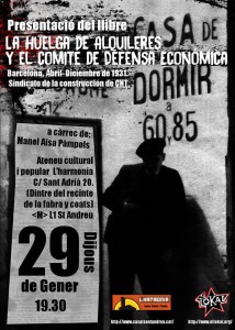 Presentació Llibre La Huelga de alquileres y el Comité de defensa económica Barcelona abril diciembre 1931 Sindicato de la Construcción de Barcelona