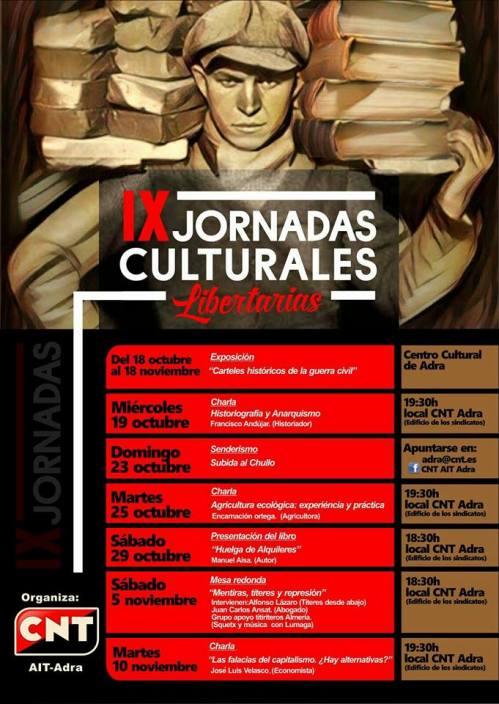 - Ahir a Terrassa, amb la CGT i el Centre d’Estudis Josep Padilla , presentant el llibre de “Tiempo de generosos y cautivos anarquistas, para echar andar en el recuerdo, 1939-1976”, de l’Editorial, El Lokal de Barcelona.
