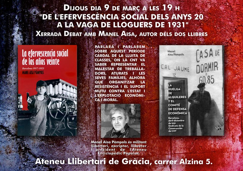- La Vaga de Lloguers de 1931 a l’Ateneu Llibertari de Gràcia, 19 de novembre de 2024