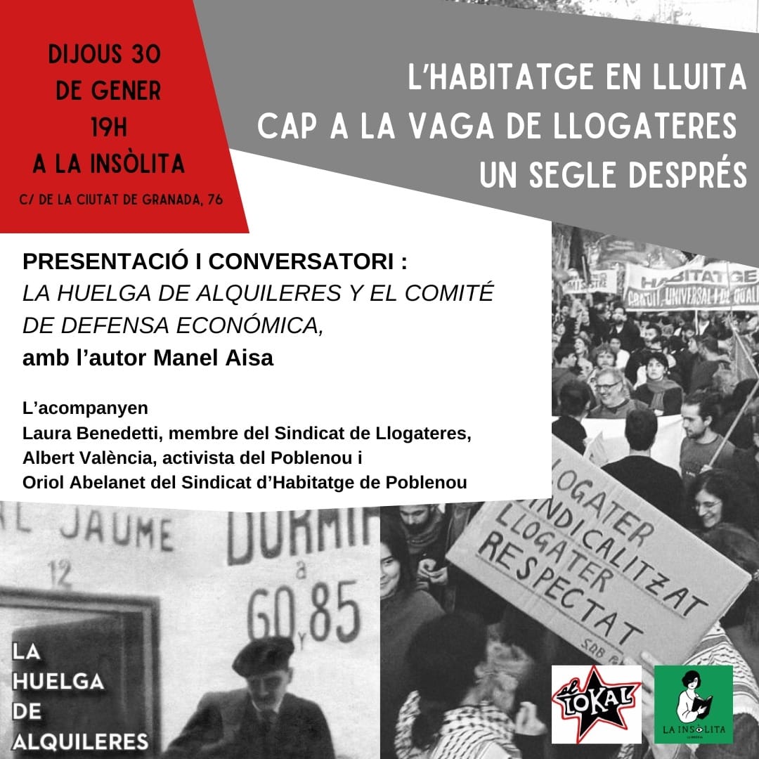 Presentació i debat a la llibreria La Insòlita del carrer Ciutat de Granada ,76 de Barcelona el proper dijpous 30 de gener a les 19 hores.