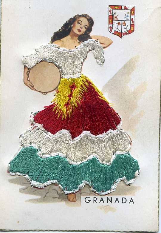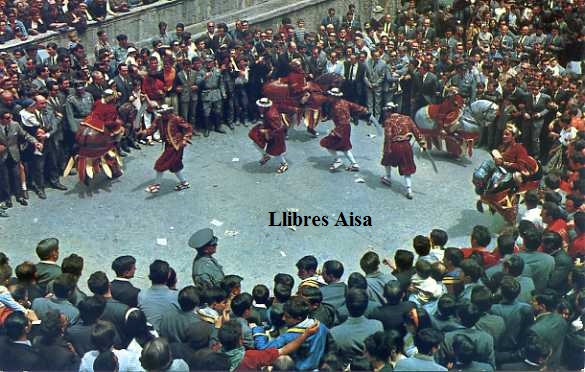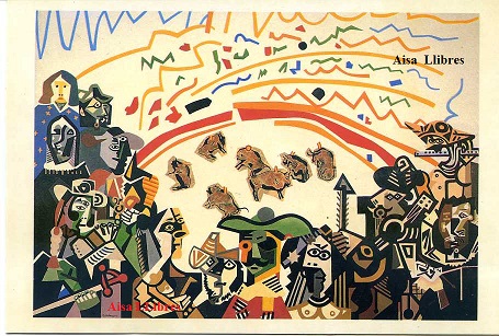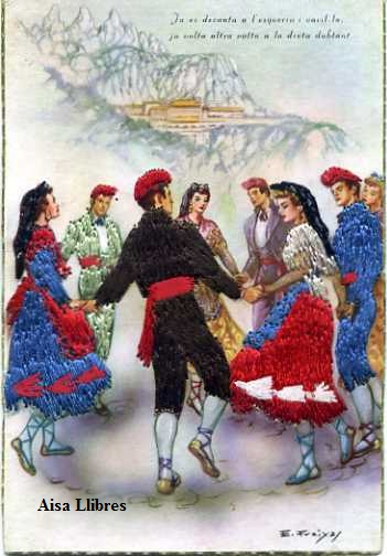 Sardanas (bordada) al fondo montanyes de Montserrat “Ja es decanta a l’esquerra i vacil•la ja volta altra volta a la dreta dubtant” dibuix E Freixas Serie I s/f (años 50?) 10 €