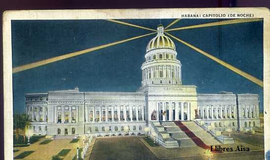 Habana Capitolio de Noche Republica de Cuba nº 82 C Jordi Obispo 106 Havana Cuba Made in USA s/d años 20 o 30 dibujada color con ventanilla algo manchada 5 €