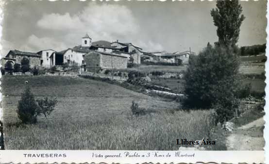 Traveseras Vista General pueblo a 3 Kms de Martinet . postal fotográfica s/d añoss 50? escrita al dorso 20 €