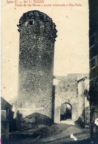 Tossa Serie 2º nº 1 Torra de les Nores i portal d’entrada a Vila Vella Fototipia Thomas Barcelona edició Joan Bancells Xibera escrita al dorso sello Alfonso XIII 15 cts 9-9-1925, tiene algunos saltos 9 €
