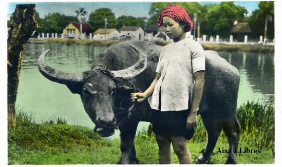 Saigon 271 Sud Viet Nam Environs de Saigon Jeune gardienne de buffle. Escrit al Dorso y firmada en Hanoi 1-3-1951 , color 9 €