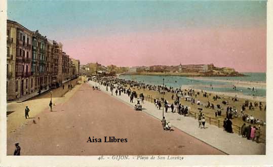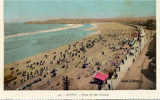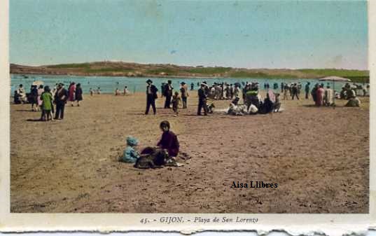 Gijón 47 Playa de San Lorenzo ed. L Roisin fot. Barcelona s/f principios siglo XX a color con ventanilla 30 €