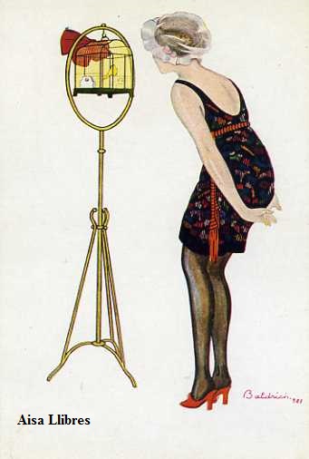 Núm 919 R Baldrich (Mujer mirando un periquito en gavia) Ediciones Victoria N Coll Salieti Barcelona s/f (principios siglo XX) 8 €