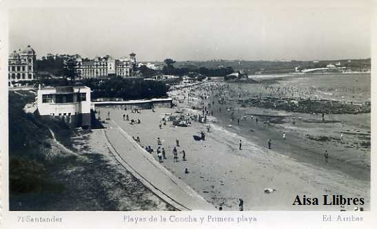 Santander nº 71 Playas de la Concha y Primera Playa Ed. Arribas Blanco y Negro con ventanilla fechada a lápiz 18-9-1950, 9 €