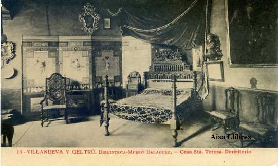 Villanueva y Geltrú nº 14 Barcelona Biblioteca Museo Balaguer Casa Sta Teresa Dormitorio. Fototipia Thomas Barcelona s/f años 20? , 8 €