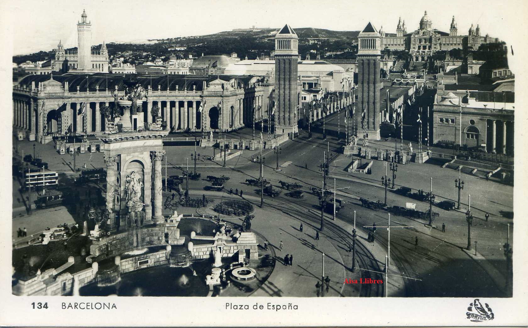 Barcelona La Plaza de Cataluña Navigazione Generale Italiana exposición Internacional de Barcelona 1929. Ed Bestetti & Tumminelli Milano/ Roma sepia con ventanilla 16 €