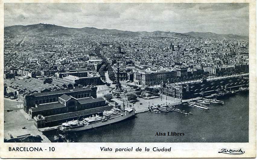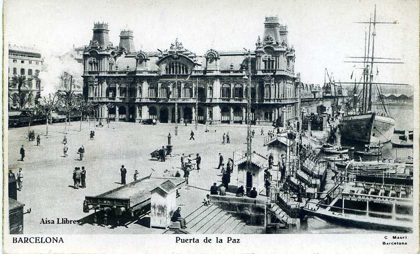 Barcelona 2 Monumento a Colón y Adunana (tachado) escrito Gobierno Militar L . Roisin fot Barcelona s/f años 30? El gobierno militar probablemente estuvo durante algunos meses en este edificio de aduanas en los inicios de la década de los 40? 5 €