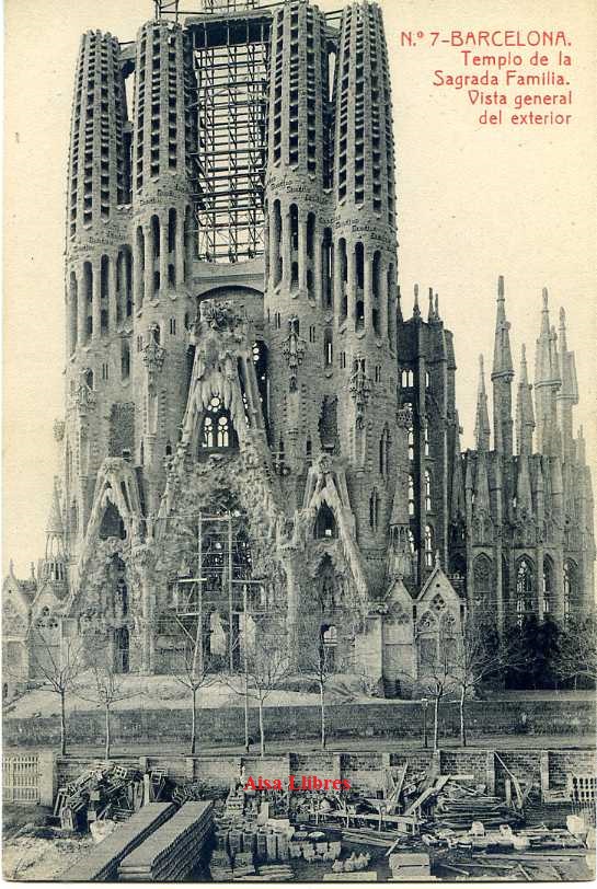 Barcelona nº 7 Templo de la Sagrada Familia vista general del exterior. Herederos vda. Plá Barcelona J Thomas. s/f Principios siglo XX? 15 €