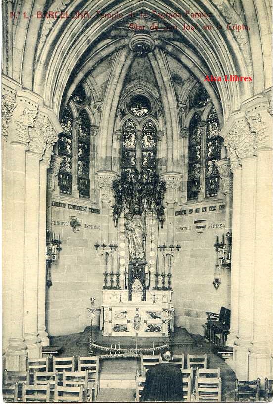 Barcelona nº 1 Templo de la Sagrada Familia Altar de San José en la cripta. Ed. Herederos de Plá Barcelona s/f principios siglo XX, 25 €