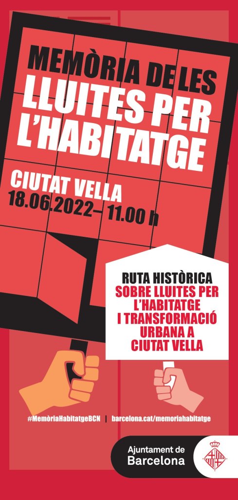 participo amb dos punts de trobada d’aquesta interessant ruta, que no és res més que una lluita per l’habitatge, per la dignitat humana, en definitiva una lluita per la vida, en aquesta casa per un sostre a la ciutat comtal, que no ha estat gens fàcil per la gent, normal i humil.