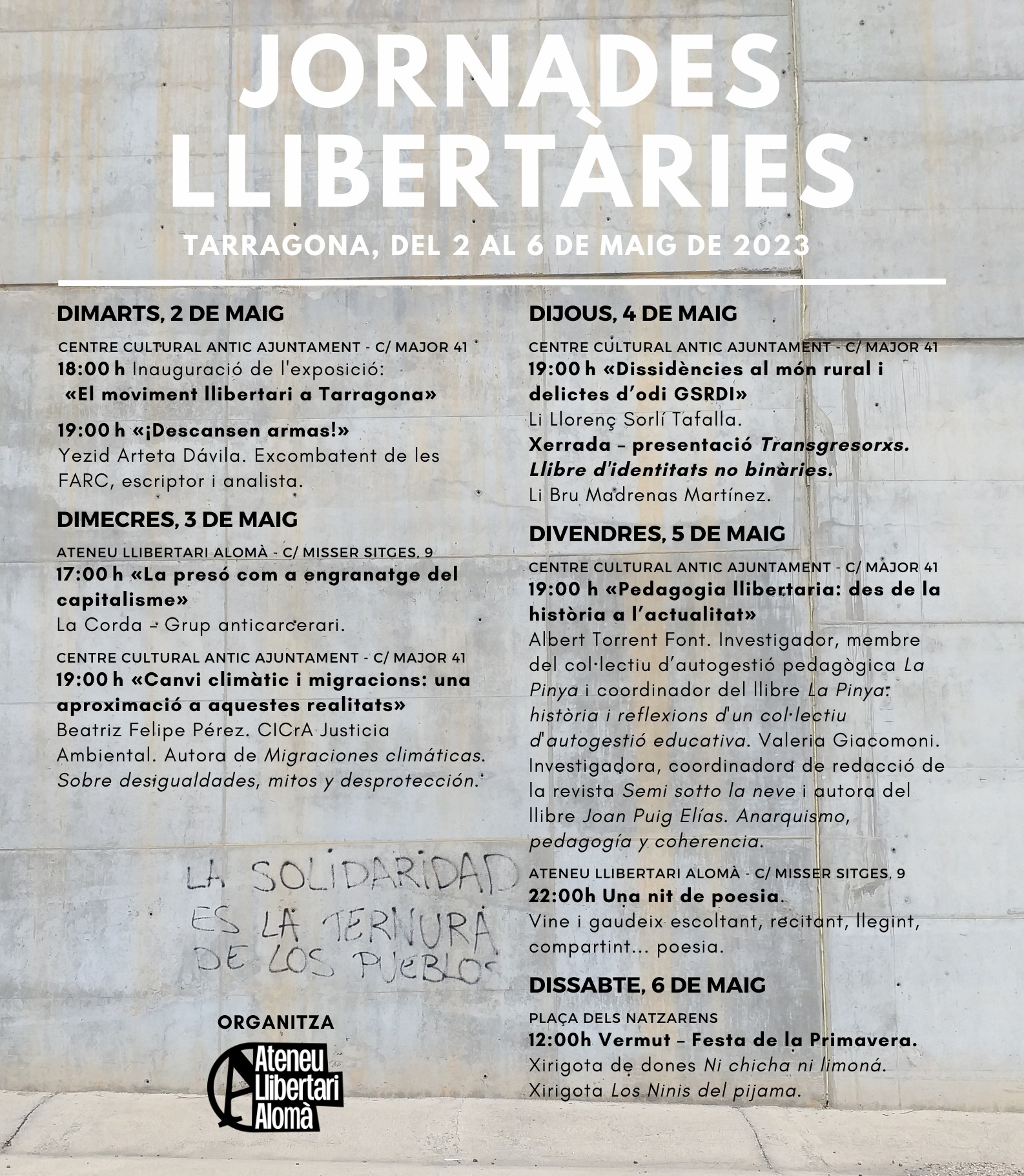 También estaría bien, saber que habéis hablado en Tarragona en el Ateneu Llibertàri Alomar, entre la pedagogía del pasado y el presente, y mejorar el futuro, naturalmente, entendemos que, para quién tenga futuro.
