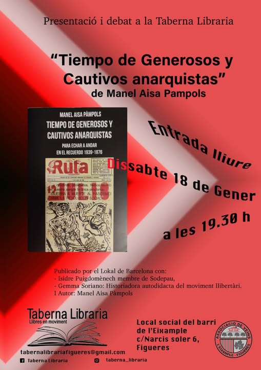 18 de Gener de 2025 a Taberna Libraria carrer Narcís Soler 6 Figueres a les 19,30 hores.