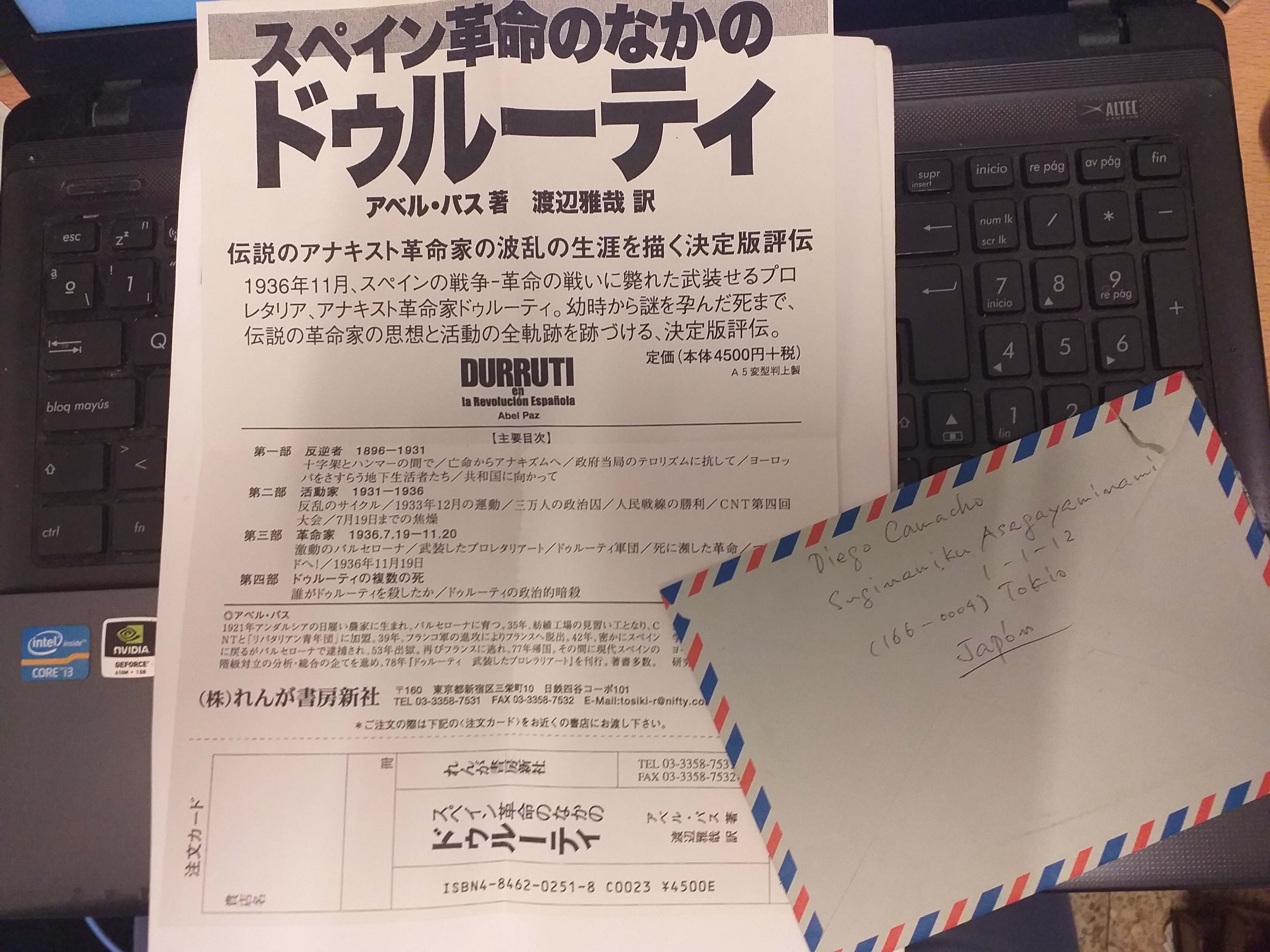 Aquí os deixo una carta del 2001 que Abel Paz (Diego Camacho) em va enviar des de Tokio recordant en Durruti per aquells indrets de les nostres antípodes. I per això no deixarem de recordar en Durruti i la seva gent.
