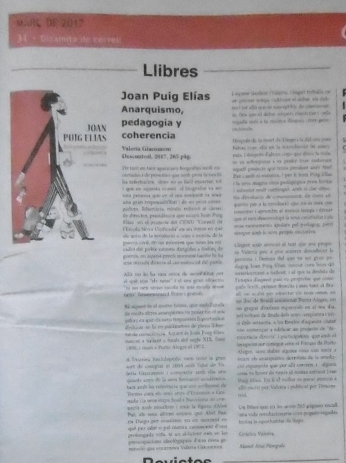 • Presentació a la Llibreria La Memòria, al barri de Gracia de Tiempo de Generosos y cautivos anarquistas y Justo Bueno, una vida cargada de ilusiones y tropiezos. de Manel Aisa Pàmpols