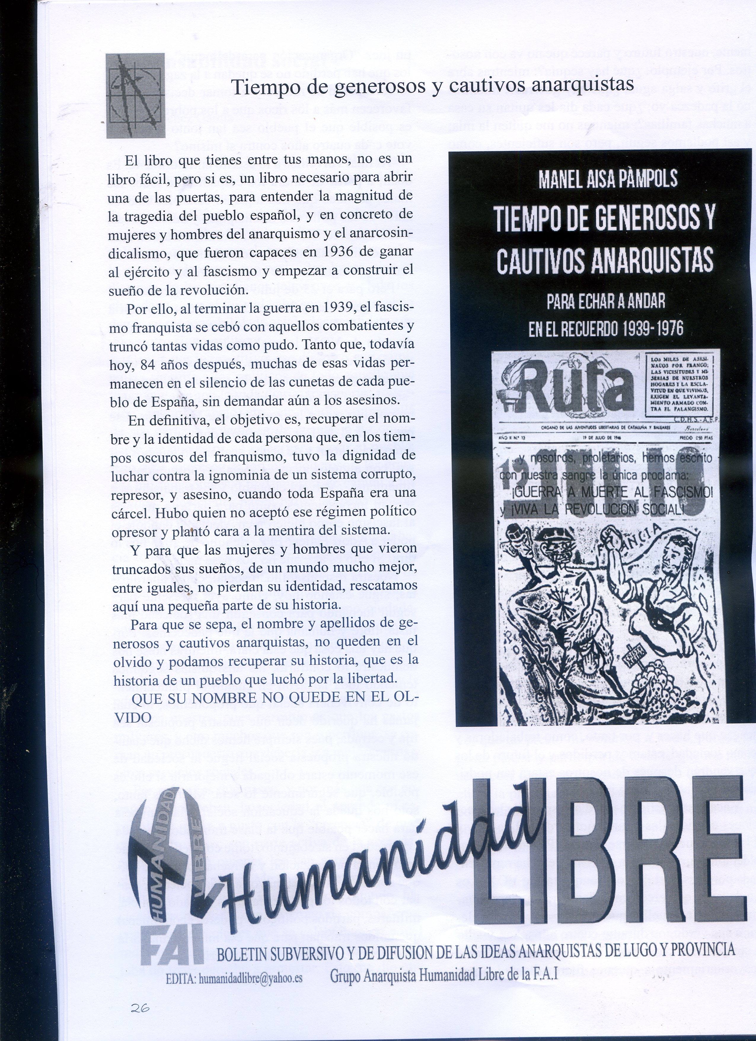 Tiempo de Generosos y Cautivos anarquistas, para echar andar en el recuerdo 1939-1976