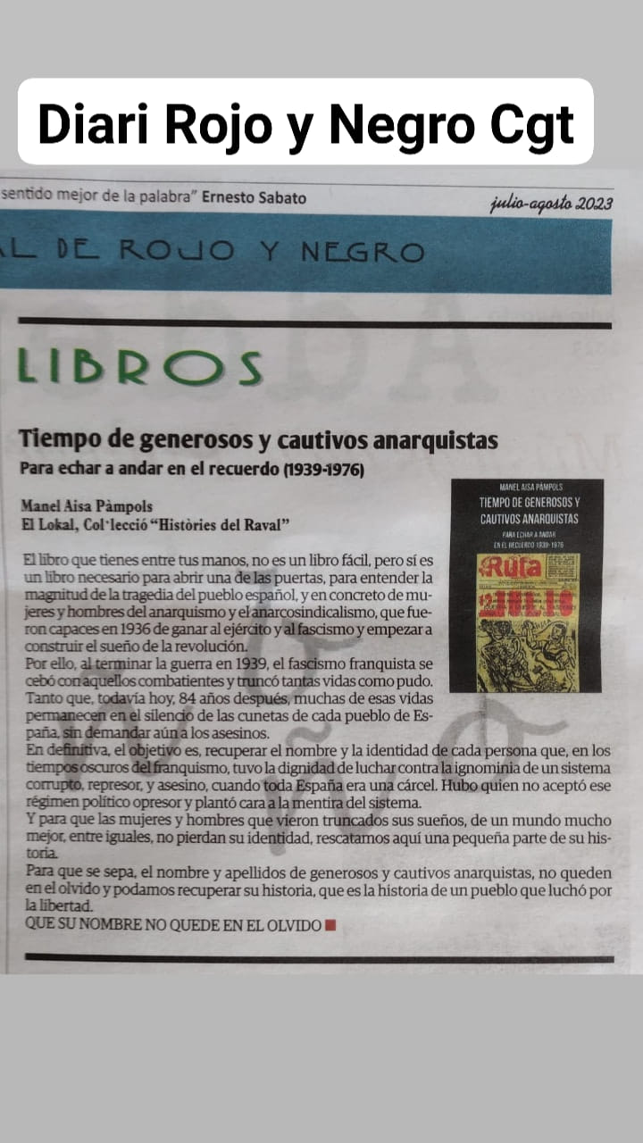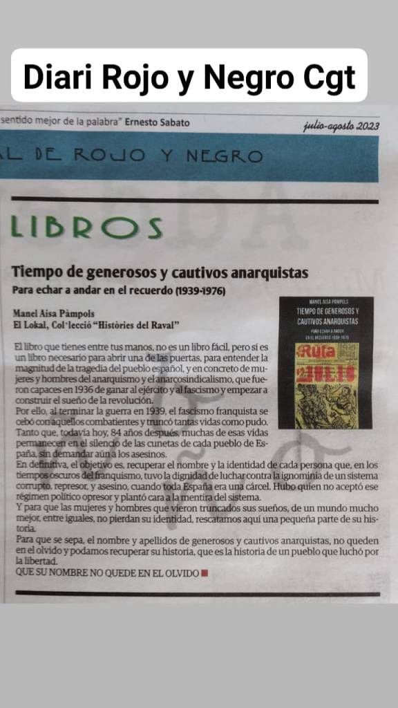 resenya publicada en el diari «Catalunya» de la CGT setembre octubre de 2023