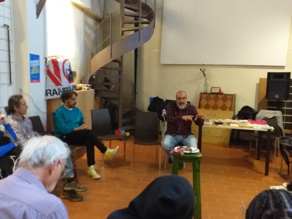 A parte de compartir, y debatir con él en el espacio corto, tuvimos la ocasión de organizar dos charlas, debate, una en el Ateneu Cooperatiu La Base, y otra en el Ateneu Rosa de Foc de Gracia, ambas reuniones fueron, magnificas, dinámicas, y de ligamen entre el movimiento libertario de aquella, zona, y el movimiento libertario que hemos conocido en Barcelona, y que ahora mismo creo que está algo desorientado y falta de estímulo, al menos en algunos espacios y lugares del centro de la ciudad, la curiosidad, por conocer de los inquietos anarquismos, ha desaparecido bastante de nuestro entorno, incluso parece que lo único que interesa sea el enfrentamiento, lo vengativo de algunas personas rencorosas, pero, el anarquismo como siempre subyace en el fondo de las personas que desde una gran cantidad de iniciativas aparecen en un momento dado en el marco de la realidad de un cambio de mentalidad, que envejece, lo cotidiano, pero no las inquietudes de un mundo mejor, que se construye a cada paso, sí, pero, obviando las estructuras burguesas que tanto hincapié nos augura el capitalismo.