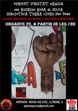 Él es uno de los miembros de la Biblioteca Terra Livre y después de describirnos, el esfuerzo que representa para ellos disponer de un pequeño espacio para guardar sus 4000 libros y los 50 kilos de libros que se ha hecho con ellos ahora entre Barcelona e Italia, para engrandecer la Biblioteca y su “centro de documentaçâo anarquista” de Sao Paulo, que nació en el 2004 gracias a la iniciativa de unos cuantos jóvenes punks de la época de los noventa.