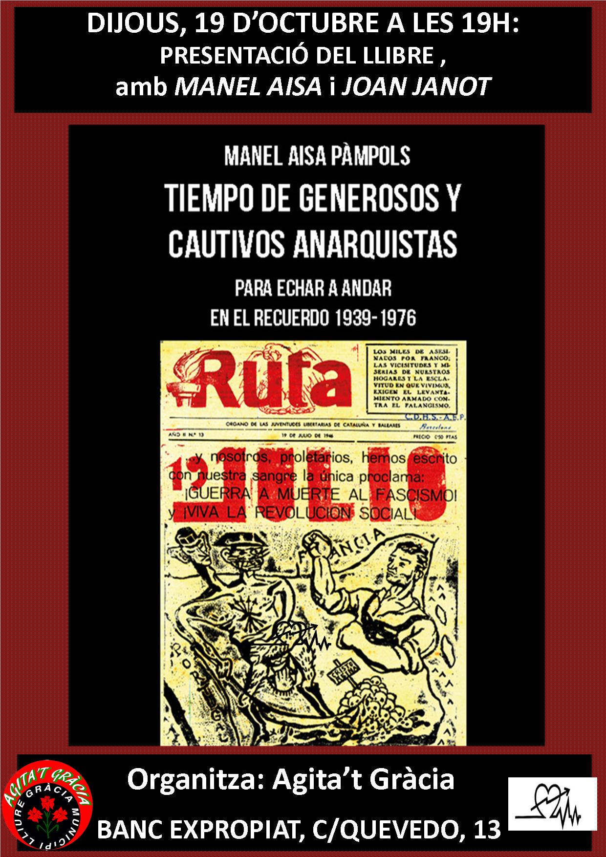 Així en el Bank expropiat i en Manresa vàrem parlar a petit comitè, del Genocidi al moviment llibertari que es va donar entre 1939 i 1976, tot va ser una massacre contra bona part de la joventut d’aquest país, que va creure que el món podia ser una mica millor i això, el poder, el capitalisme,no estava disposat a consentir.