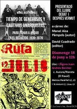 Con la idea de que en cada presentación podamos hablar de personajes del movimiento libertario que pagaron con la cárcel o en frente del pelotón de Ejecución, hablamos de Josep Domenech Avellanet, que en 1942 fue condenado a muerte y fusilado, él era miembro de las Juventudes Libertarias de Hospitalet no pudo escapar a Francia, ya que antes de terminar la guerra fue detenido en el frente de batalla, fue acusado de 200 asesinatos en el pueblo de la Fatarella, una aberración del franquismo como tantas otras, también tuvimos tiempo de hablar de Pedro Targarona en 1943, acusado de diversos atracos en la ciudad de Barcelona y la muerte de un empresario, Targarona era un joven de las Juventudes Libertarias, que ya con 16 o 17 años estaba, en los grupos de acción del momento que estaban en la órbita de los ateneos como Faros o el ateneo del Clot, todo y que él era de Maresme. También se comentó sobre la detención de Eduardo Barriobero, qué preso y enfermo en la Modelo de Barcelona, ya hacía un tiempo que la gente del SIM lo había acusado de robo de joyas y no sé cuántas cosas más que nunca le pudieron demostrar, pero con caída de Barcelona puedo haber escapado y exiliarse, pero él estaba cansado y abatido y optó por quedarse durmiendo en la Modelo, con la llegada del fascismo a la ciudad, estos celebraron la caza mayor que representaba la detención de Barriobero, era una pieza de caza mayor que celebraron con bombo y platillo. El resultado, ya lo sabemos, fue condenado a muerte y ejecutado, el 8 de febrero tuvo su consejo de guerra y la sentencia se cumplió dos días después en el campo de la Bota.