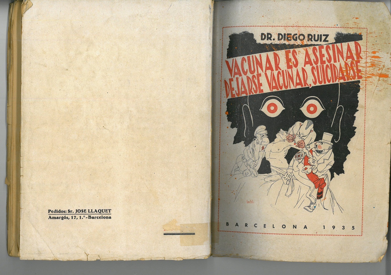 Una vegada alliberat del càrrec de Director del Hospital freniátrico de Salt escriu una de les seves obres més punyents «Vacunar es asesinar dejarse vacunar suicidarse» amb il·lustracions de J Bartolí y ja ens parla en el llibre de Abel Gudra i de la seva companya Umbria crec que sempre relacionant els seus pseudònims i donant-li vida pròpia i parentesc com també fa amb el seu alumne Peter Pynton com veurem amb el seu treball sobre «la sifilis es una enfermedad».